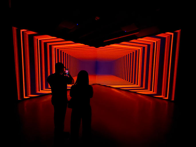 Another favorite experience was Hopscotch, a queer-owned immersive art experience. Located downtown, the fun starts with a bar that serves some of the best drinks in town. And patrons are encouraged to take their drinks to the galleries downstairs, allowing for a relaxed experience of all the art. Many of the artworks incorporate light and movement, and most have an interactive component, making it a joy for both kids and adults. There’s a powerful queer installation done in conjunction with the Human Rights Coalition, and there’s even a neon lit ball pit that we jumped in, pretending we were in elementary school once again.