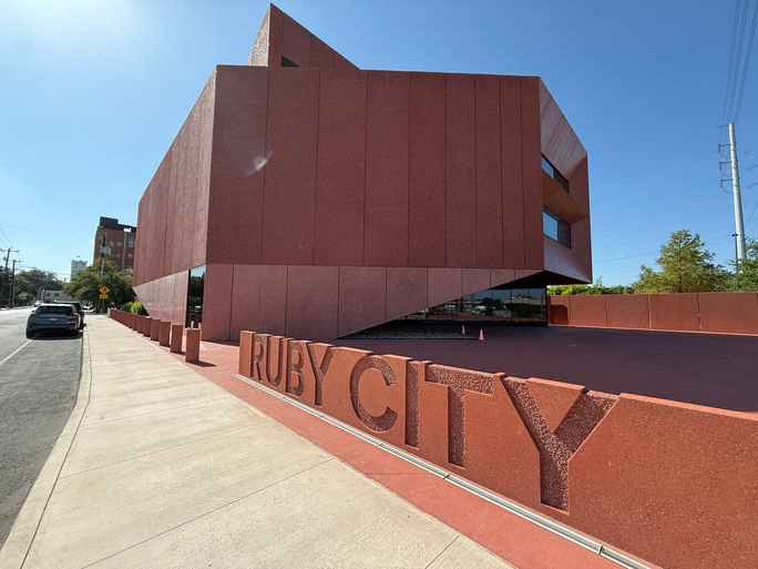 Ruby City is a contemporary art museum, housed in an angular, boxy structure that feels full of movement. It’s the legacy of Linda Pace, herself an artist, collector, and philanthropist who was the daughter of the founders of Pace Foods, commonly known for Pace Picante Sauce. The museum includes the main building, a sculpture garden, and Chris Park (named after Pace’s son), with meandering paths, art, and another smaller building, the Studio, with temporary exhibitions.